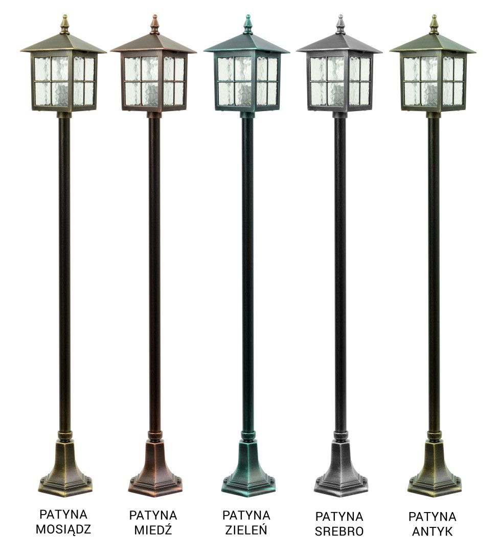 The Wenecja K 5002/1/KW lamp is available in 6 color variants: the basic black and patinas: brass, silver, copper, green, and antique (patinas are additionally secured with high-quality clear lacquer).