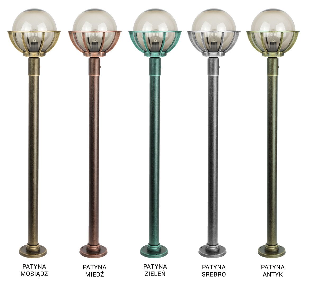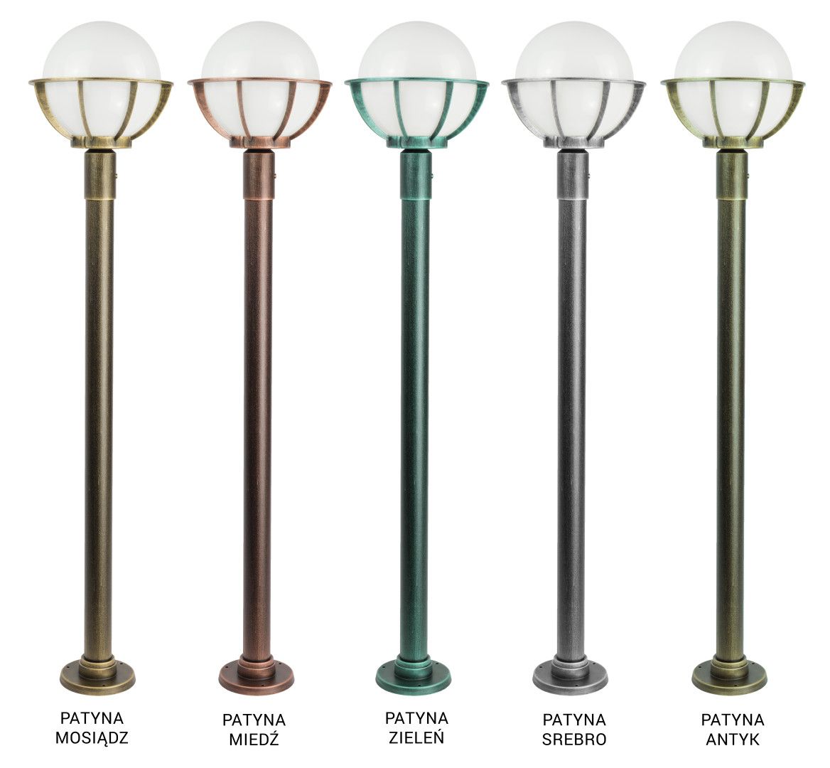 It comes in three height variants: 43 cm, 90 cm, and 130 cm. The lamp is available in six color finishes: standard black, and patinas in gold, silver, copper, green, and antique. The patinas are additionally protected with high-quality clear lacquer.