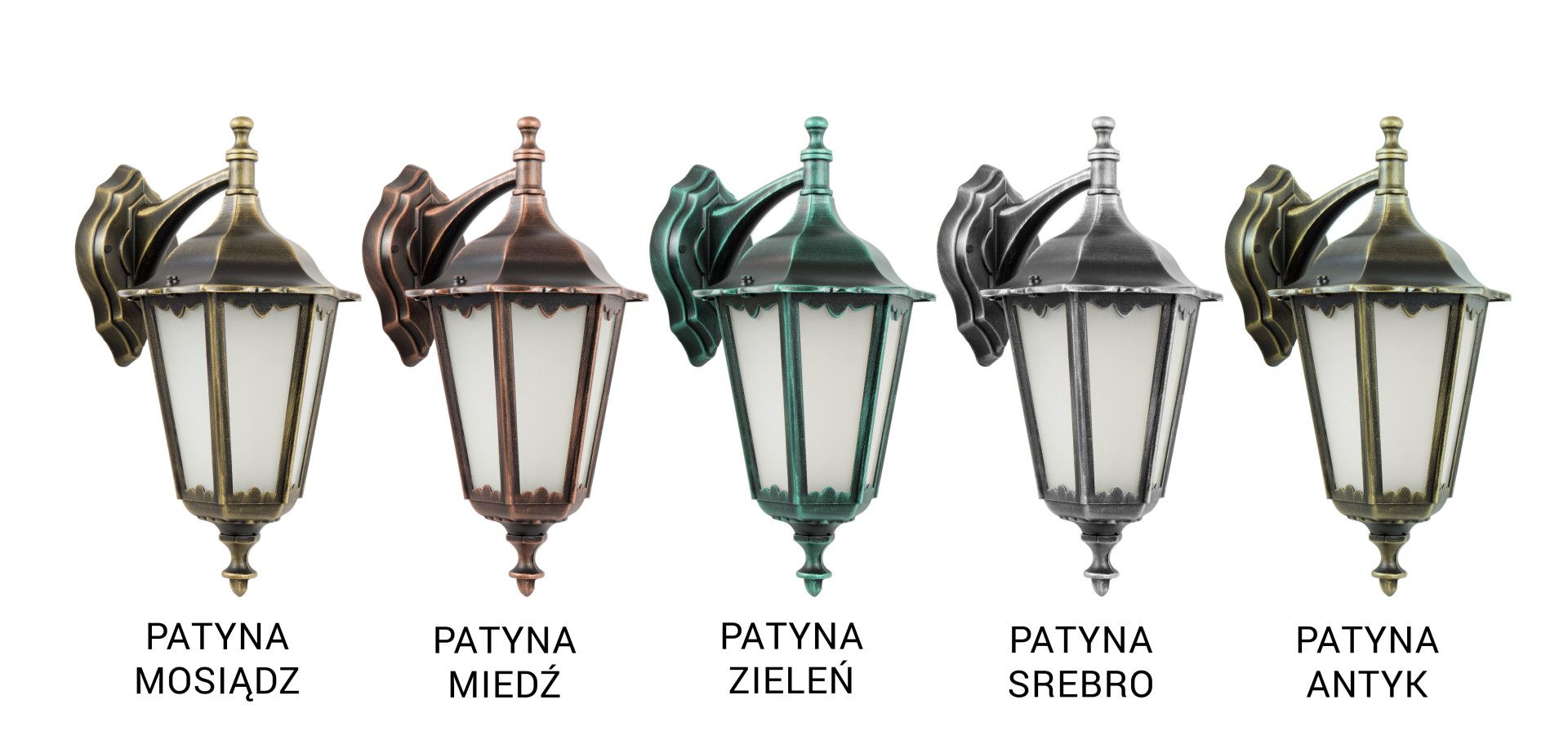 The lamp is available in six attractive color options: classic black and optional patinas including brass, silver, copper, green, and antique. Patinated versions are additionally protected with high-quality clear lacquer, which not only enhances their aesthetics but also safeguards them against external factors. Each available color option gives the wall lamp a unique character, enabling it to be tailored to different interior design styles and aesthetic preferences.