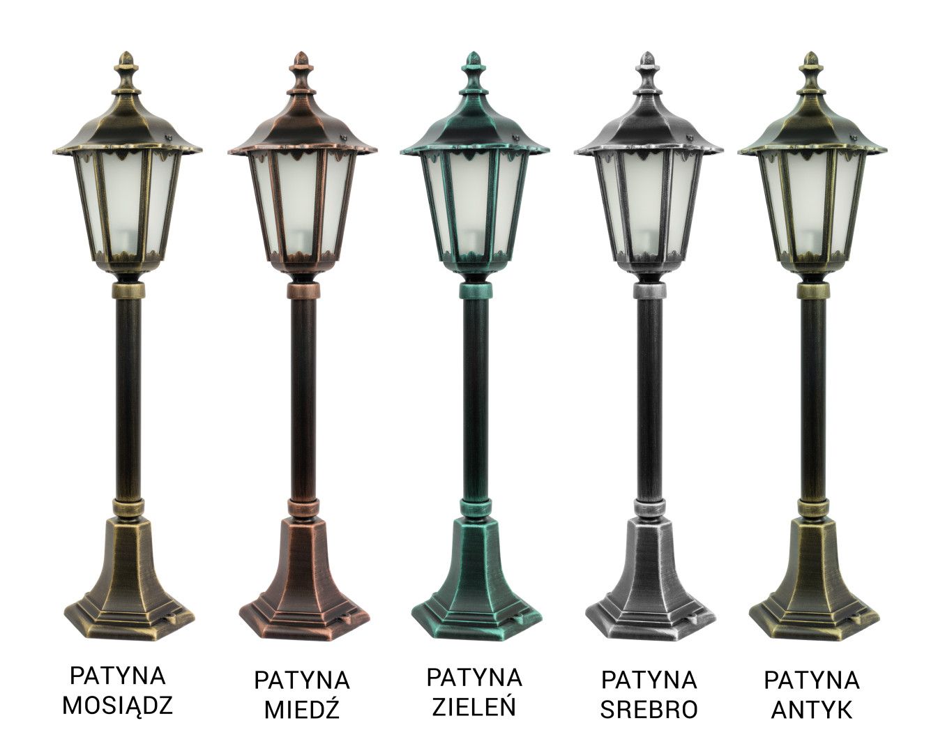 Retro Midi K 5002/3/M is available in six attractive color variants, allowing for perfect matching to any arrangement. The offered colors are classic black and elegant patinas in shades of gold, silver, copper, green, and antique. These patinas are additionally protected with high-quality clear lacquer, which not only enhances the depth of colors but also effectively protects the lamp's surface from harmful weather conditions. The lamp is also available in three height variants: 43 cm, 76 cm, and 106 cm, allowing for flexible adaptation to various lighting needs, providing appropriate illumination in any location where it is installed.