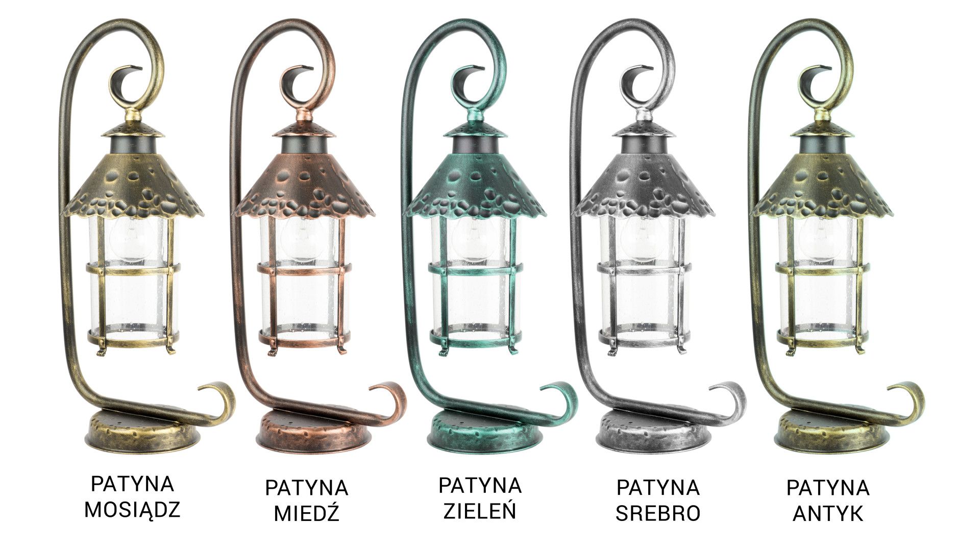 The Toledo K 4011/1/R lamp is available in six elegant colors: classic black and patina finishes in brass, silver, copper, green, and antique. Each version is additionally protected with a high-quality clear lacquer, ensuring long-lasting durability and aesthetic appeal.