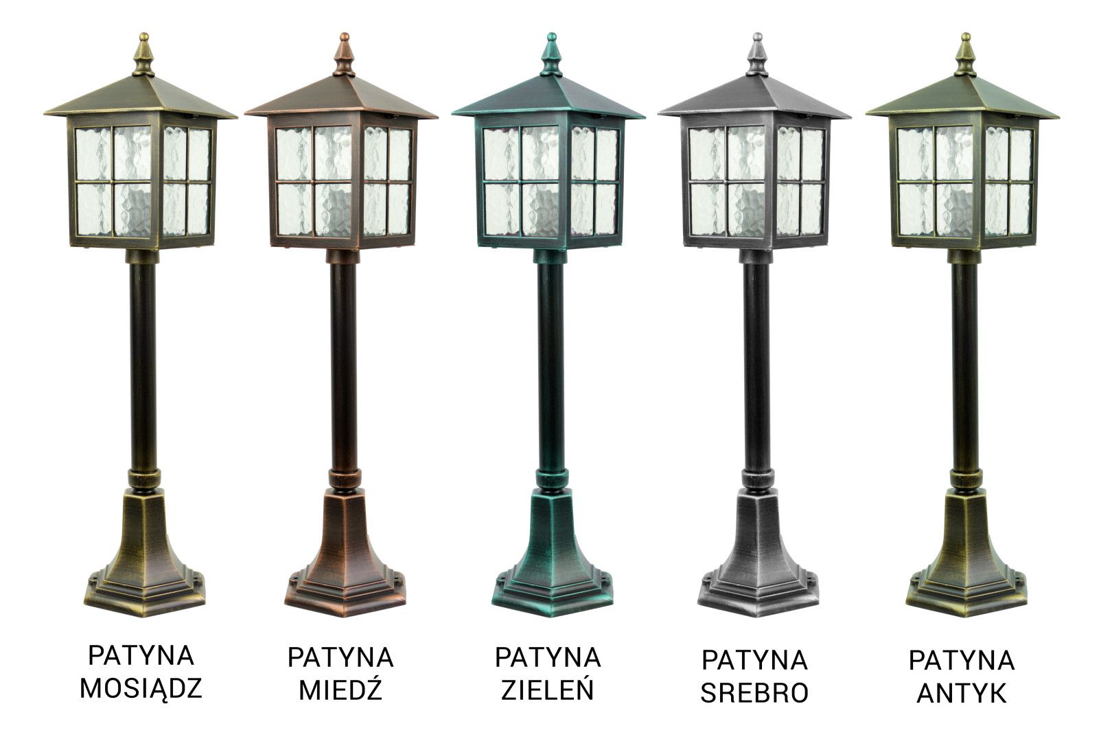 The Wenecja series is also available in elegant versions with decorative patinas, which are further protected with a clear lacquer to ensure lasting durability and aesthetic appeal. The lamp is offered in six color variants: classic black, as well as patinas in brass, silver, copper, green, and antique.