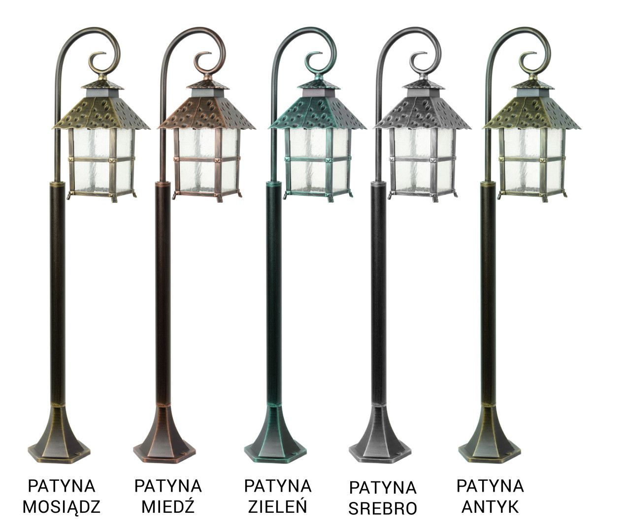 The fixture is available in 6 color variants, including basic black and optional patinas: gold, silver, copper, green, and antique (the patinas are additionally protected with high-quality clear varnish).