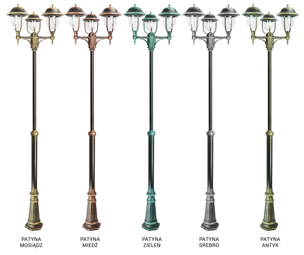 Available in 6 color variants: basic black, as well as patinas in brass, silver, copper, green, and antique (patinas additionally protected with high-quality clear lacquer).