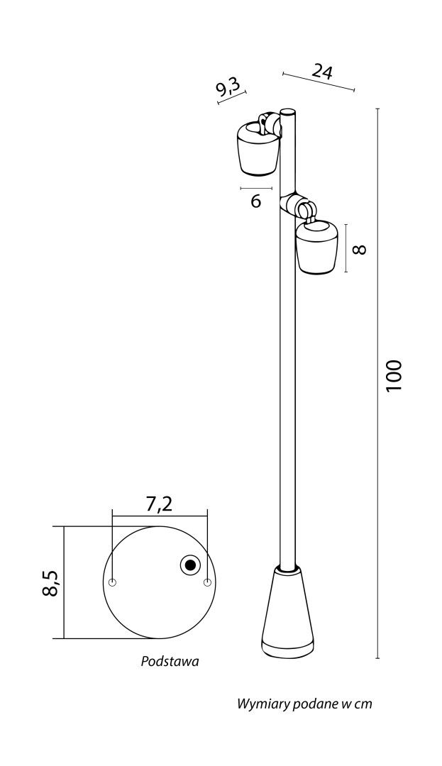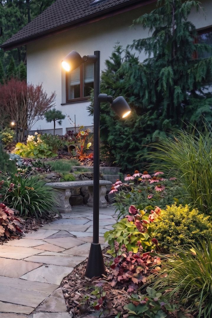 Lampa wyposażona jest w dwie niezależne głowice. Możesz je ustawić tak, aby jedna oświetlała ścieżkę pod nogami, a druga eksponowała elewację budynku lub koronę drzewa.