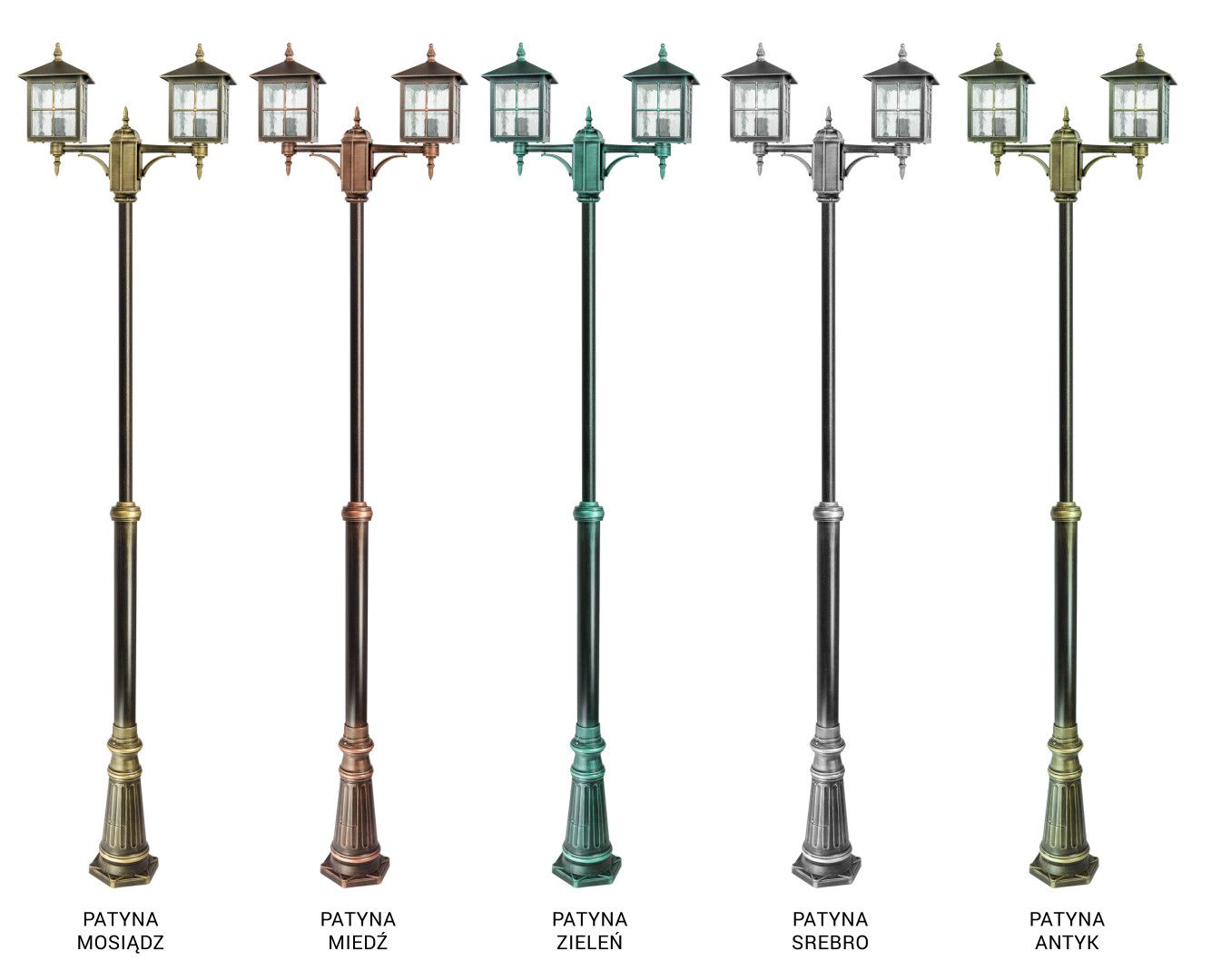 Lampy serii Wenecja prezentują się znakomicie w różnych wariantach kolorystycznych. Podstawowym kolorem jest czarny, jednak dostępne są również wersje patynowane: mosiądz, srebro, miedź, zieleń i antyk. Patyny są dodatkowo zabezpieczone wysokiej jakości lakierem bezbarwnym, co podkreśla ich elegancję i trwałość. Klasyczna lampa masztowa Wenecja OGMWN 2 KW to doskonały wybór dla tych, którzy cenią sobie ponadczasową elegancję i tradycyjny styl. Dzięki wysokiej jakości materiałom, regulowanej wysokości oraz możliwości dostosowania źródeł światła, lampa ta sprosta oczekiwaniom nawet najbardziej wymagających użytkowników, tworząc przy tym niepowtarzalny klimat w każdej przestrzeni.