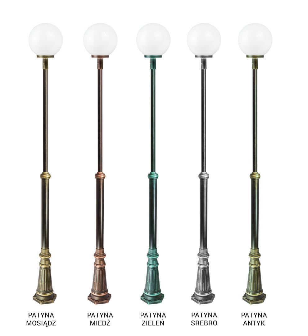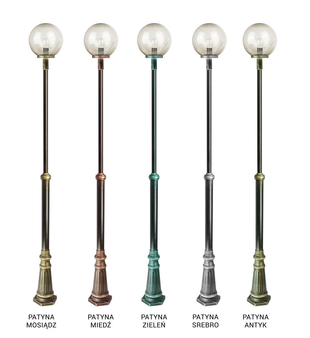 Do masztu można zamówić klosz w kolorze białym który przyjemnie rozprasza światło oraz przeźroczysto-przydymionym który dodaje elegancji i tajemniczości.